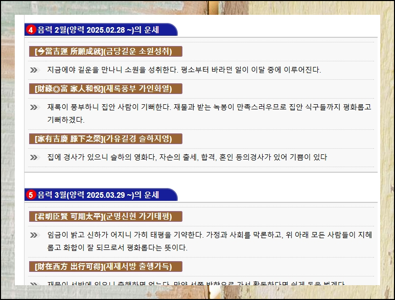 사주풀이 도우미의 토정비결로 더 넓은 시야를 가져보세요. 올해뿐만 아니라 다가올 날들의 이야기도 무료로 들려드립니다.