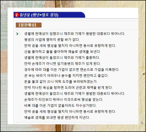 태어난 순간부터 60세 이후까지의 여정이 궁금하다면 주목하세요. 생년월일과 시각을 바탕으로 당신의 인생 전반을 비춰드립니다. 앞날의 길잡이가 되어줄 소중한 정보를 확인하세요.