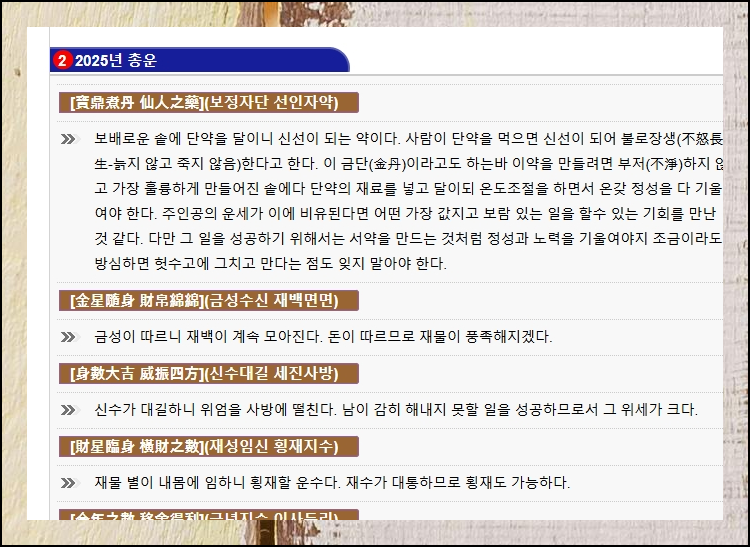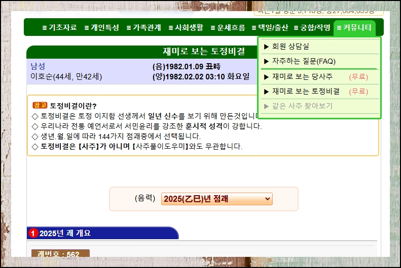 사주풀이 도우미의 토정비결로 더 넓은 시야를 가져보세요. 올해뿐만 아니라 다가올 날들의 이야기도 무료로 들려드립니다.