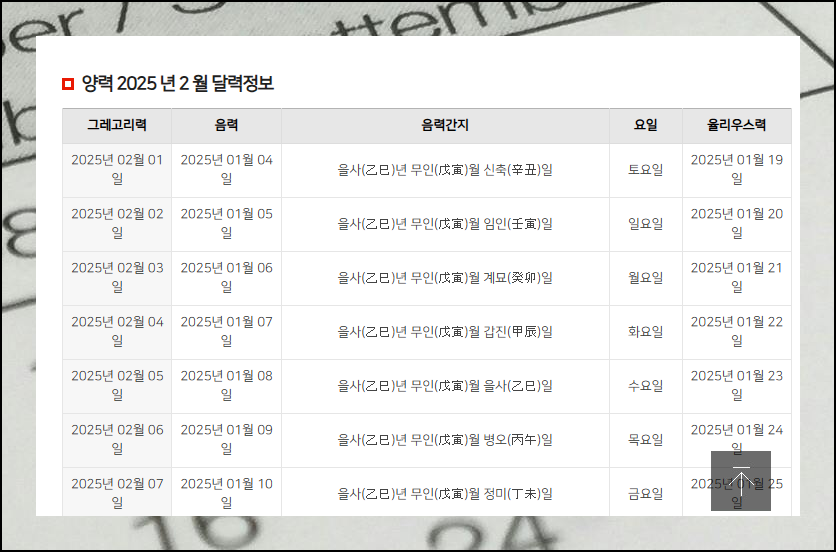 음력 양력 변환기 외에도 월별 음양력 대조표 기능이 유용해요. 한 달 전체의 날짜 정보를 쉽게 파악할 수 있습니다.