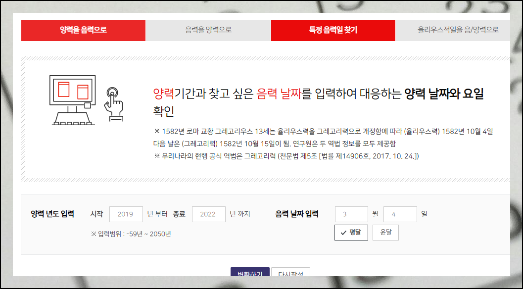 음력 양력 변환기에서 연도와 월일만 입력하면 원하는 날짜의 모든 정보를 얻을 수 있어요. 요일까지 한 번에 확인해보세요.