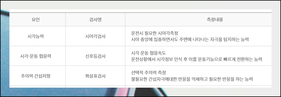 실제 운전 환경과 비슷한 상황에서 운전자의 판단력을 확인합니다. 도로를 찾고 표지판을 기억하며, 탑승자가 있는 차량을 구분하는 등 4가지 항목을 체크해요. 이는 실제 도로에서 마주칠 수 있는 상황들을 안전하게 대처할 수 있는지 보는 거랍니다. 특히 고령운전자분들은 이러한 종류의 테스트에 익숙해질 필요가 있어요.