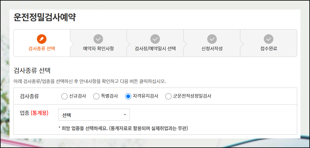 운전정밀검사예약 메뉴에서 자격유지검사 대상자에 맞는 테스트 유형과 업종을 선택하고, 원하는 장소와 날짜를 지정하면 끝이에요. 예약방법이 어렵지 않죠? 2025년에도 고령운전자분들도 쉽게 이용하실 수 있습니다.