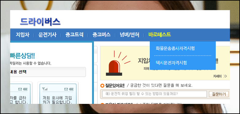 드라이버스 웹사이트에서는 버스운전에 관련된 예상문제를 풀어볼 수 있어요. 누구나 이용할 수 있다는 점이 장점입니다.