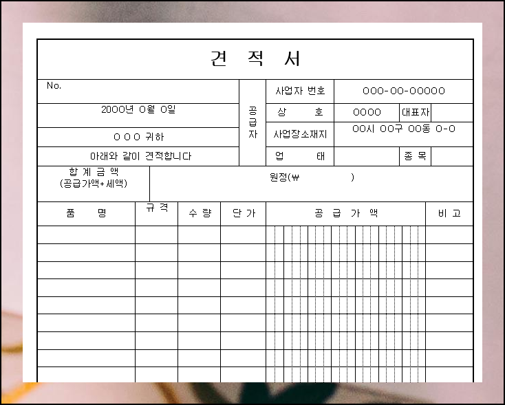 견적서 양식 무료다운 및 활용 방법