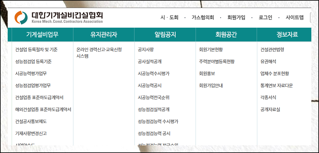 웹사이트 상단의 '자료' 항목을 선택하시면 건설업종과 해외건설업 표준 문서 옵션이 표시됩니다. 직접적으로 '민간건설공사'라는 명칭은 없지만, 이 경로를 통해 필요한 계약서 양식에 접근하실 수 있습니다.