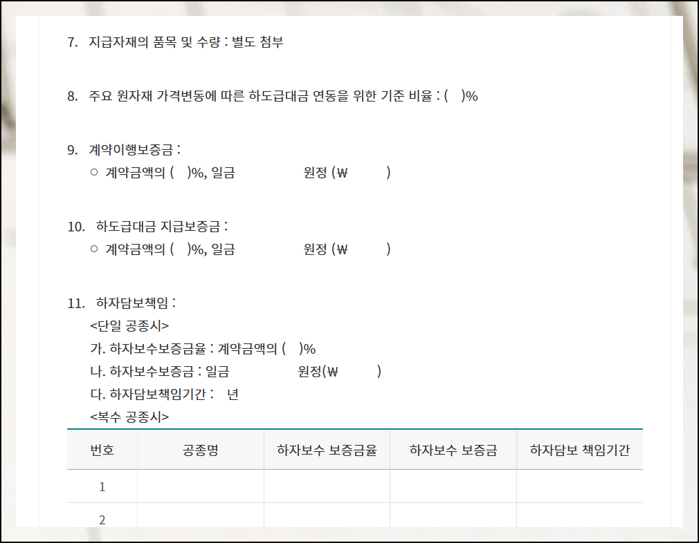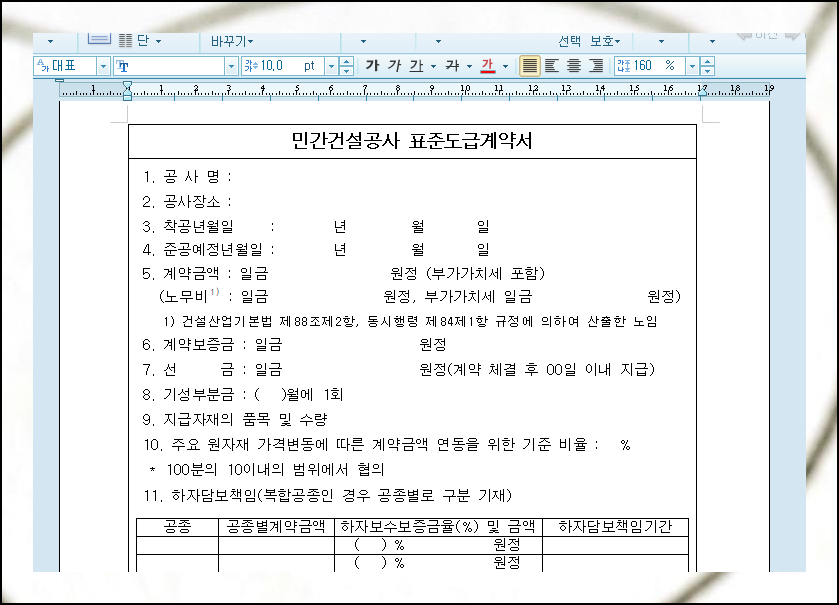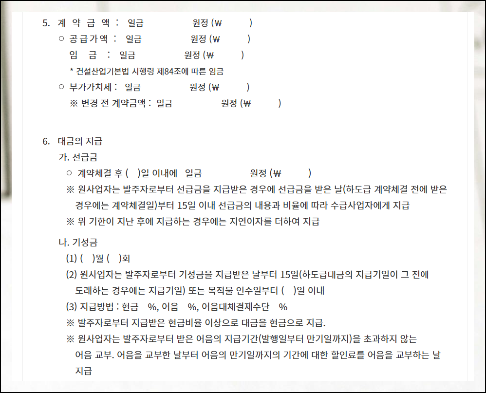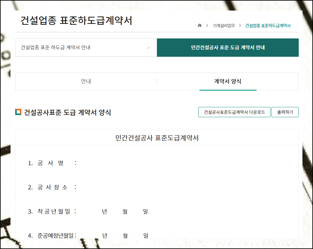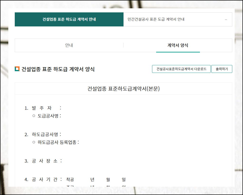 공사도급 표준계약서 양식 두가지 다운로드