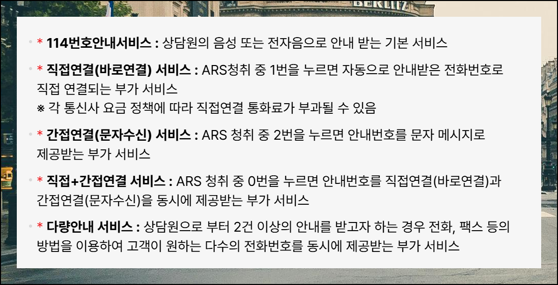 비용 안내를 미리 말씀드릴게요. 114 이용은 187원이나 209원 정도의 기본 요금이 발생합니다. 통화 연결시 121원이 추가되고, 문자 수신은 88원이 청구되요. 소액이지만 이러한 세부 사항까지 숙지하시면 더욱 좋겠죠. 콜택시를 부르기 전에 참고하세요.