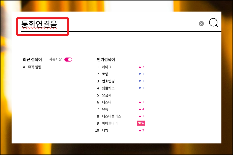검색창이 표시되면 "통화연결음"이라고 입력하고 엔터키를 눌러주세요. 이 키워드가 컬러링 서비스를 정확하게 찾아주는 핵심 단어랍니다. 곧바로 원하는 정보를 확인하실 수 있을 거예요.