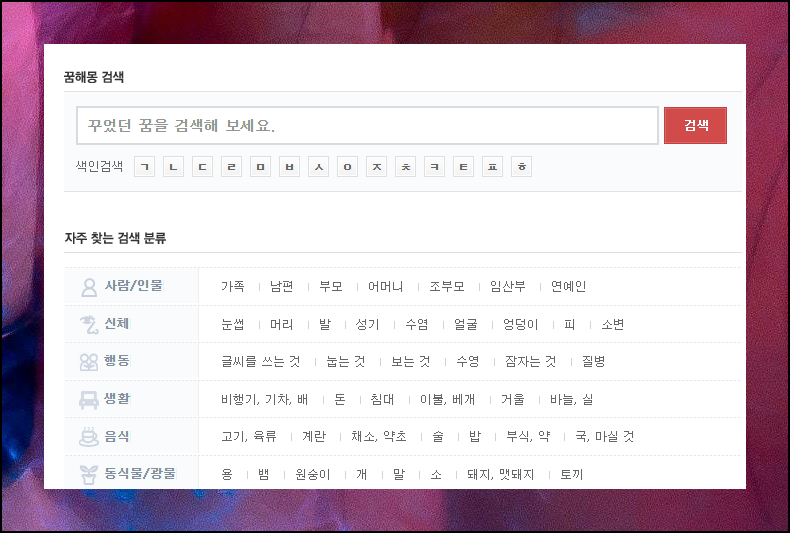 해몽 내용을 찾는 방식은 두 가지예요. 직접 키워드를 입력하거나 카테고리에서 선택하는 방법 중 편한 것을 고르세요. 두 가지 방법 모두 무료로 제공되니 필요에 따라 골라서 사용해보세요.