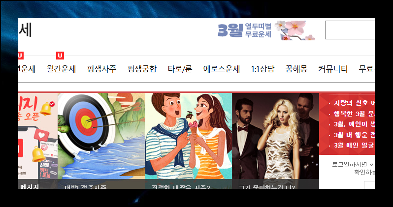 네이트 운세는 꿈풀이는 물론이고, 타로, 운세, 사주, 궁합 등 다양한 서비스를 제공해요. 메뉴에서 '꿈풀이'를 선택하면 무료로 꿈풀이 페이지를 확인할 수 있습니다. 우측에 있는 무료 운세 서비스도 부담 없이 활용해보세요.