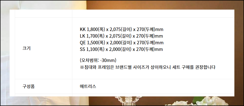 시몬스침대 매트리스 등급 비교 분석, 사이즈부터 경도까지 한눈에 보기