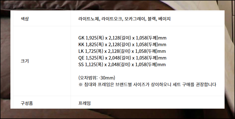 추가로 프레임 사이즈도 따로 안내가 되어 있으니 다음 이미지를 참고 바랍니다.