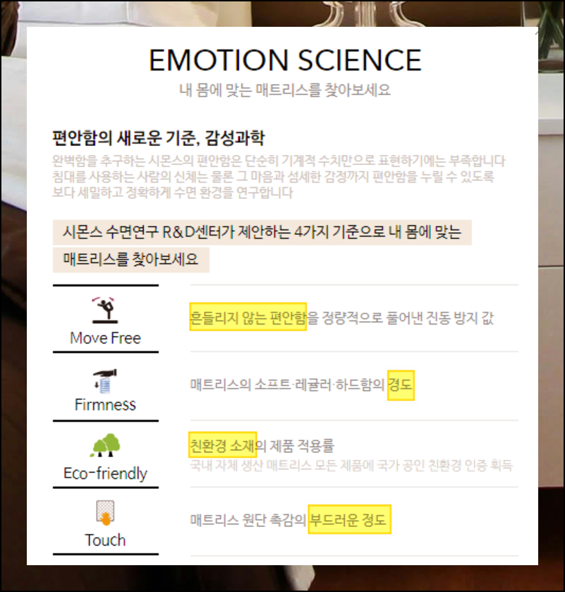 시몬스침대 매트리스 등급 비교 분석, 사이즈부터 경도까지 한눈에 보기