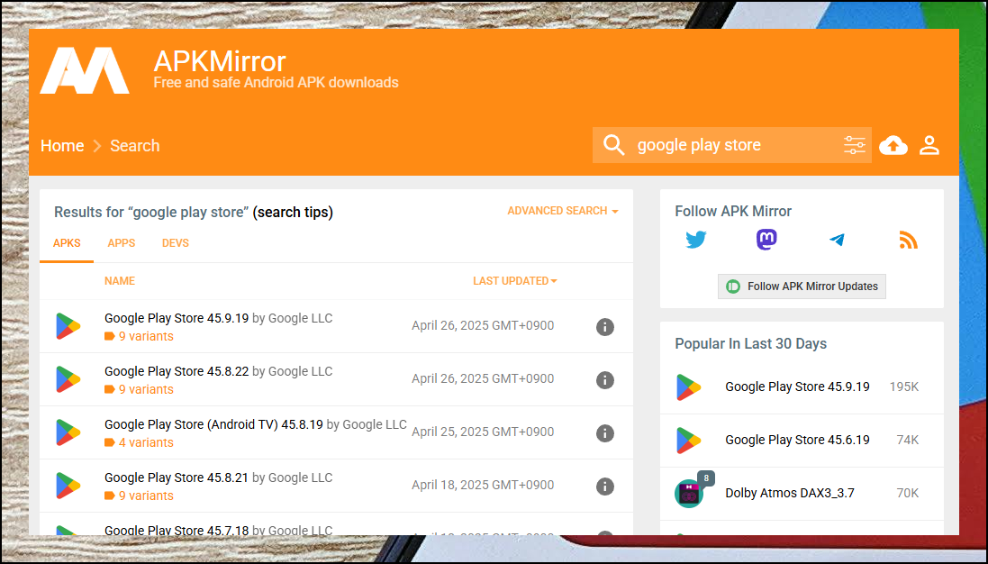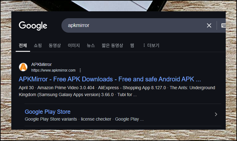 안드로이드 디바이스를 준비했다면 APKMirror 웹사이트에 접속해 주세요. 이곳은 안전한 APK 파일을 제공하는 믿을 수 있는 곳입니다.
