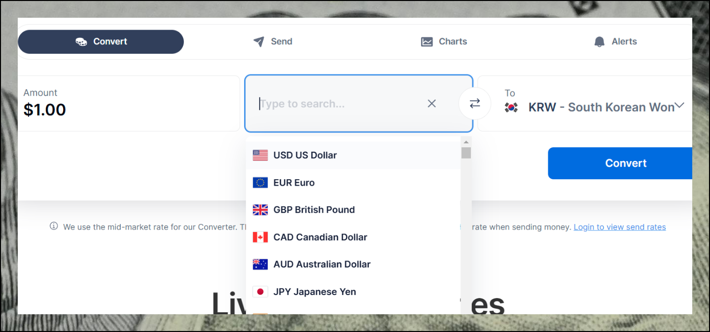 설치나 회원가입 같은 번거로운 절차 없이 웹사이트에 접속하는 것만으로도 실시간 환율 정보부터 변동 추이까지 한눈에 파악할 수 있습니다.