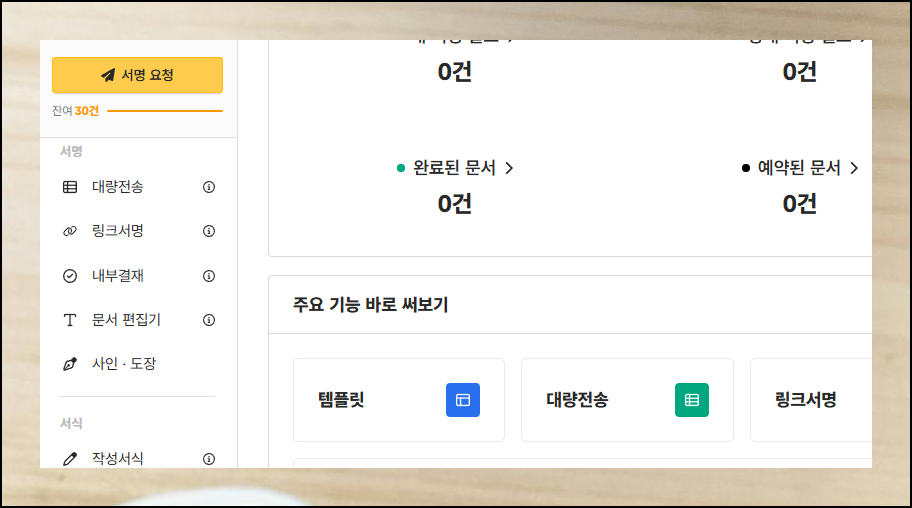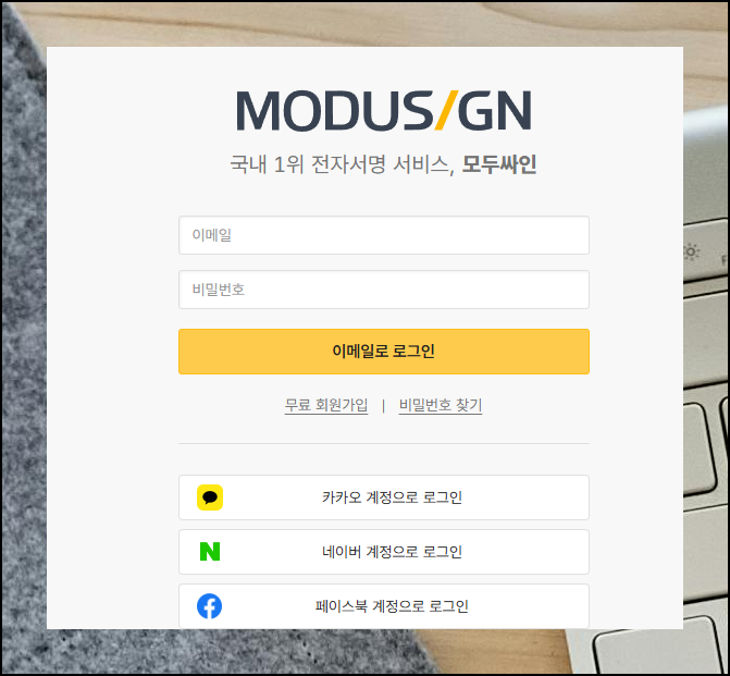 로그인 후 모두싸인 관린 화면에 접속했다면, 이제 서비스를 찾아볼 차례예요.