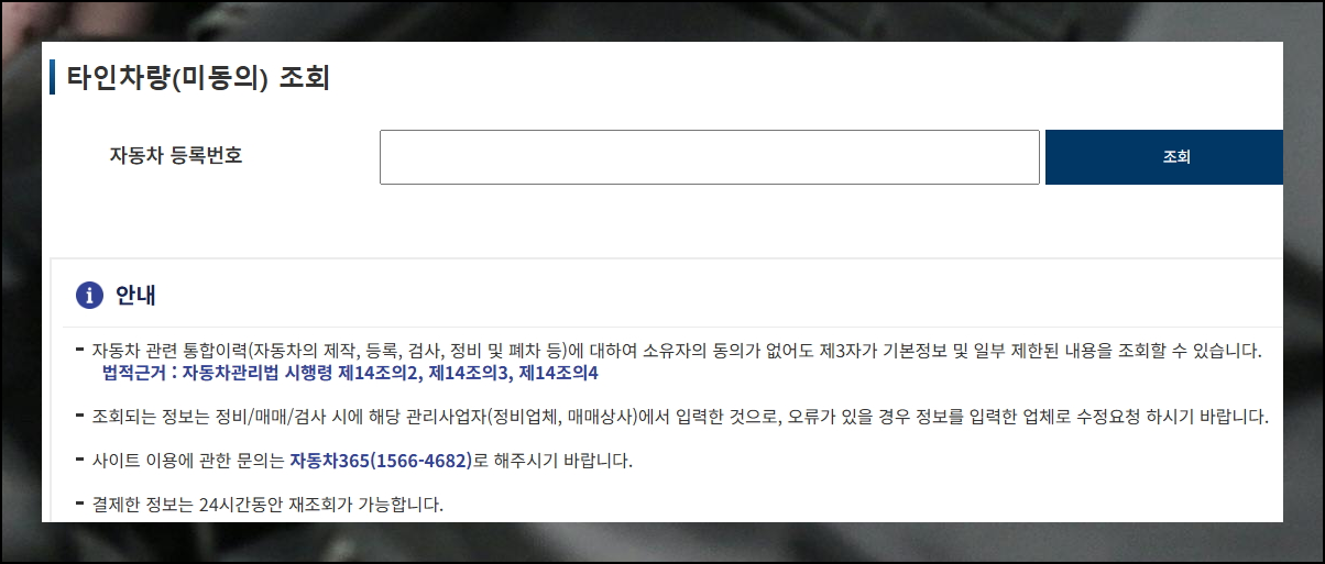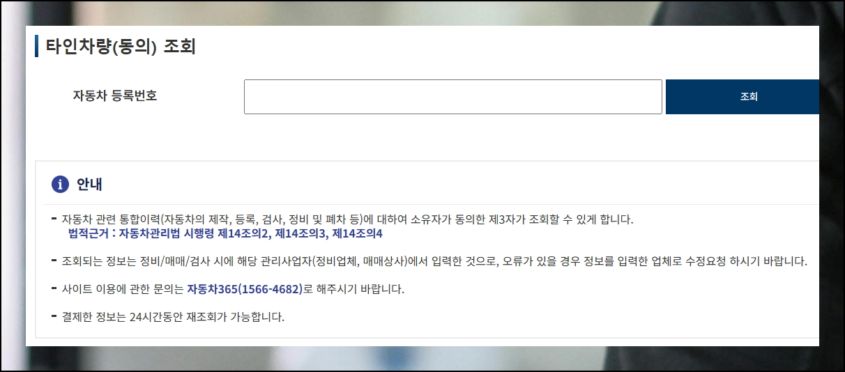 타인 소유 중고 자동차 정보를 열람하려면 타인차량 조회 기능을 활용하세요. 소유자의 동의 여부에 따라 이용 가능한 이력 범위가 달라집니다.