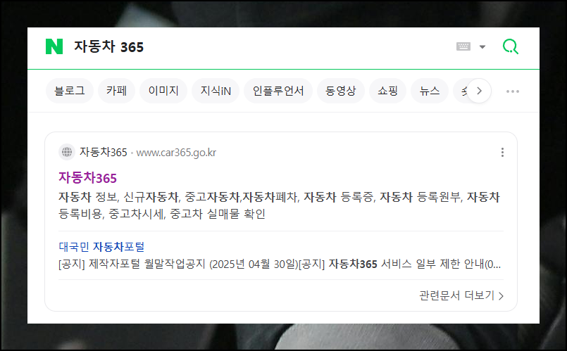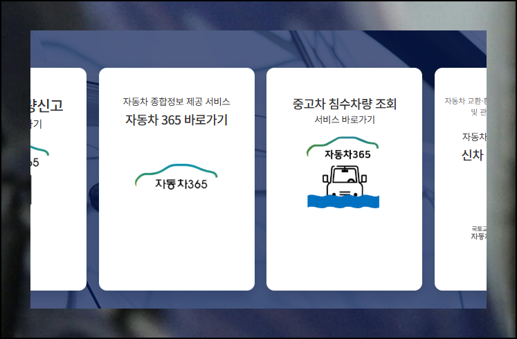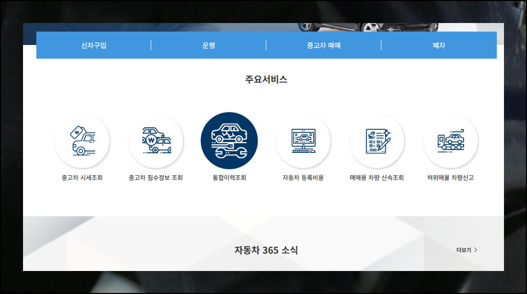 "자동차 365 바로가기" 버튼을 선택하면 직관적인 화면으로 구성된 사이트에 접속할 수 있습니다. 처음 방문하시는 분들도 쉽게 내용을 찾을 수 있어요.