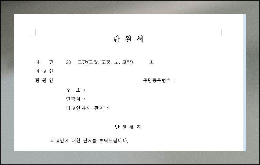 탄원서의 가장 중요한 부분은 내용이니 신중하게 준비해야 합니다. 양식이 필요하신 분들은 아래 첨부된 파일을 다운로드 받아 활용하세요.