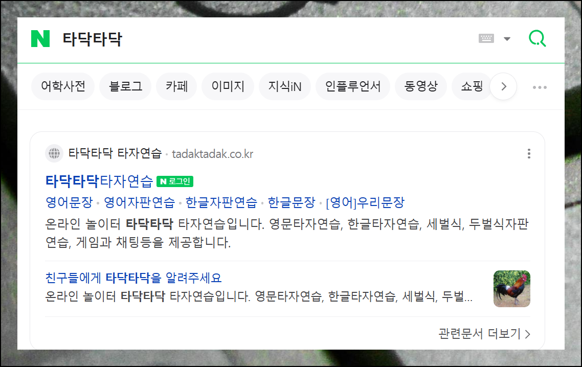이제는 웹사이트에서 바로 한글 타자연습이 가능해요. 예전처럼 프로그램을 따로 설치할 필요 없이 '타닥타닥'을 검색하면 바로가기 버튼을 찾을 수 있습니다.
