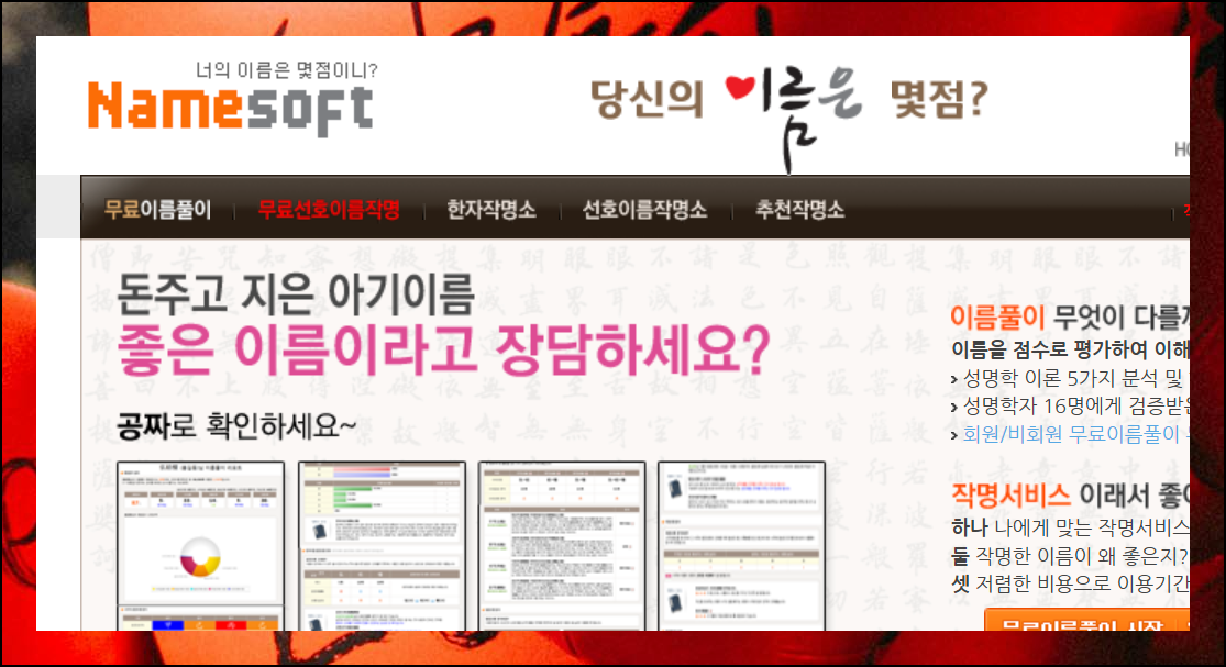 이름을 지을 때 도움이 되는 사이트 중 하나로 네임소프트가 있어요. 이곳의 가장 큰 특징은 무료로 고품질의 작명 서비스를 이용할 수 있다는 점입니다.