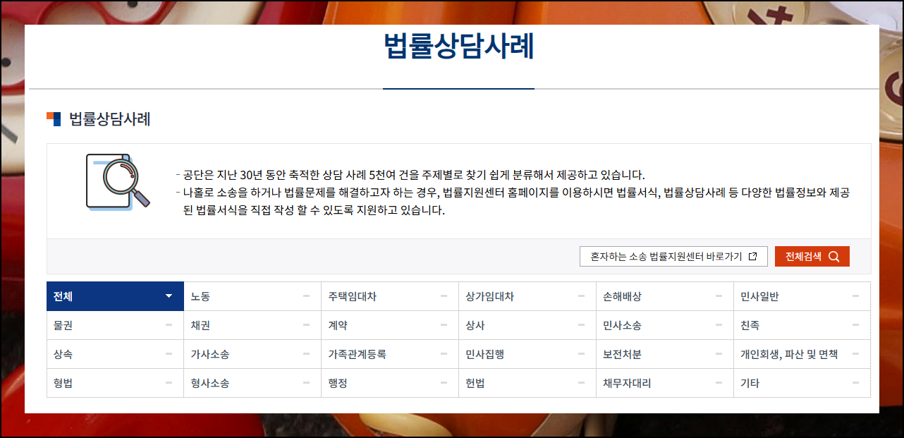 다른 사람들의 상담 사례를 보는 방법을 알려드릴게요. 법률구조공단 홈페이지에서 관련 메뉴를 찾아 클릭하면 됩니다. 실제 내용들을 읽어보면 내 상황과 비슷한 경우를 발견할 수 있어요.