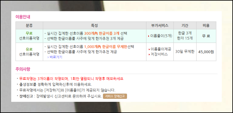 오늘 알려드릴 인터넷 사이트에서는 이름 해석과 작명 서비스를 무료로 받을 수 있어요. 다만 꼭 기억해야 할 중요한 조건이 있습니다. 한 사람당 오직 한 번만 무료로 사용할 수 있다는 제한이 있어요.