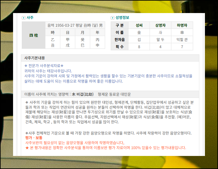 (8) 사주와 성명의 조합