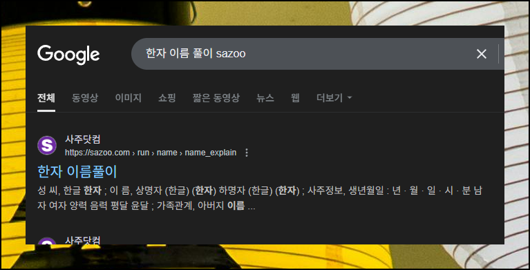 자신의 성명에 관련하여 좀 더 상세하고 풍부한 한자 풀이 결과를 보고 싶다면 sazoo 사이트를 이용해 보세요. 두 번째로 알려드리는 곳 역시 무료로 이용 가능합니다. 첫 번째 사이트보다 해석의 양이 많아요.