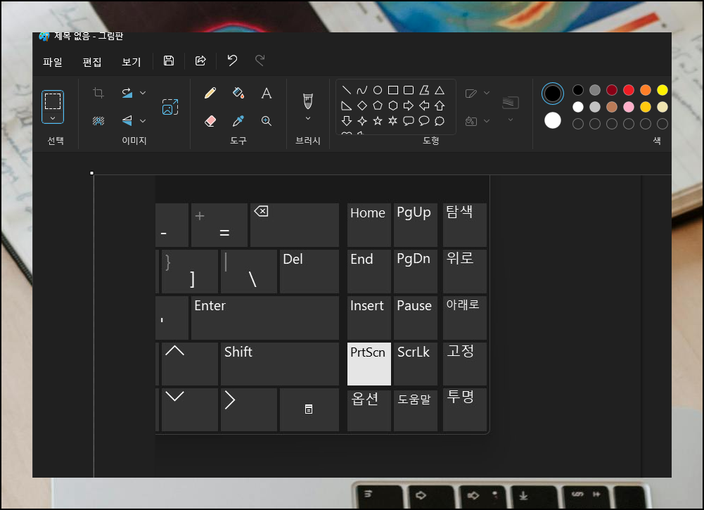 모니터 화면을 이미지 파일로 만드는 기능은 PC에 기본으로 갖춰져 있습니다. 키보드에서 Print Screen 또는 PrtScn 버튼을 찾아보세요. 이 버튼은 보통 키보드 오른쪽에 자리 잡고 있어요. 이미지로 저장하고 싶은 화면이 나타났을 때 이 버튼을 한 번 눌러주면 됩니다. 눌렀을 때 특별한 소리나 알림이 없어도 정상적으로 해당 화면이 저장된 상태입니다.