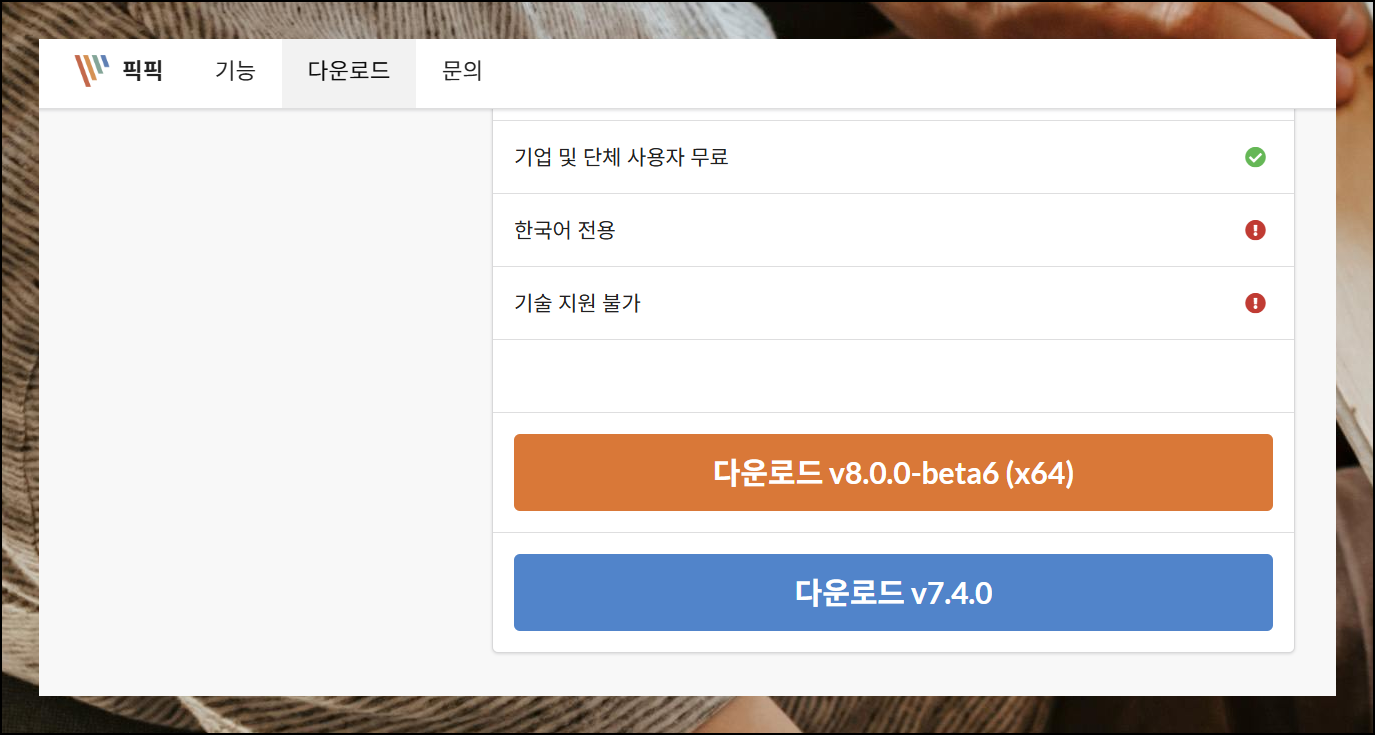 픽픽 공식 홈페이지에 접속해서 최신 버전을 다운로드하세요. 설치 과정은 매우 간단하고 몇 분이면 완료됩니다. 개인 이용자는 물론 기업에서도 무료로 사용할 수 있는 프로그램이에요. 설치 파일을 실행하고 안내에 따라 진행하면 됩니다.