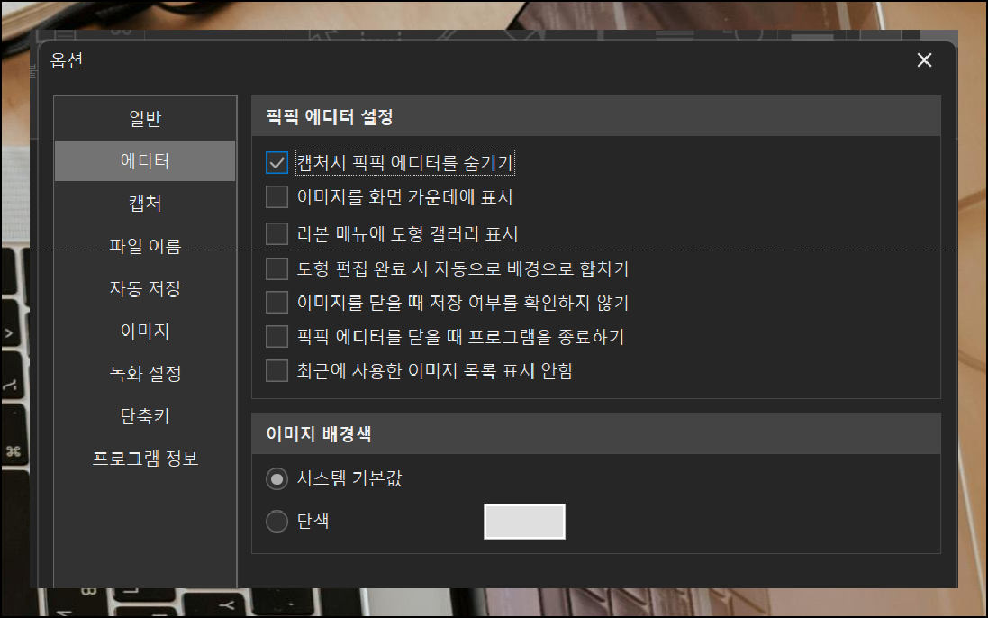 설치가 완료되면 기본 설정을 해보겠습니다. 작업표시줄 오른쪽 아래에 있는 픽픽 아이콘을 찾아서 오른쪽 버튼으로 클릭하세요. 설정 메뉴를 선택하면 다양한 옵션을 조정할 수 있어요. 캡처 설정에서 프린트스크린 버튼을 눌렀을 때 자동으로 지정된 폴더에 보관되도록 할 수 있습니다.