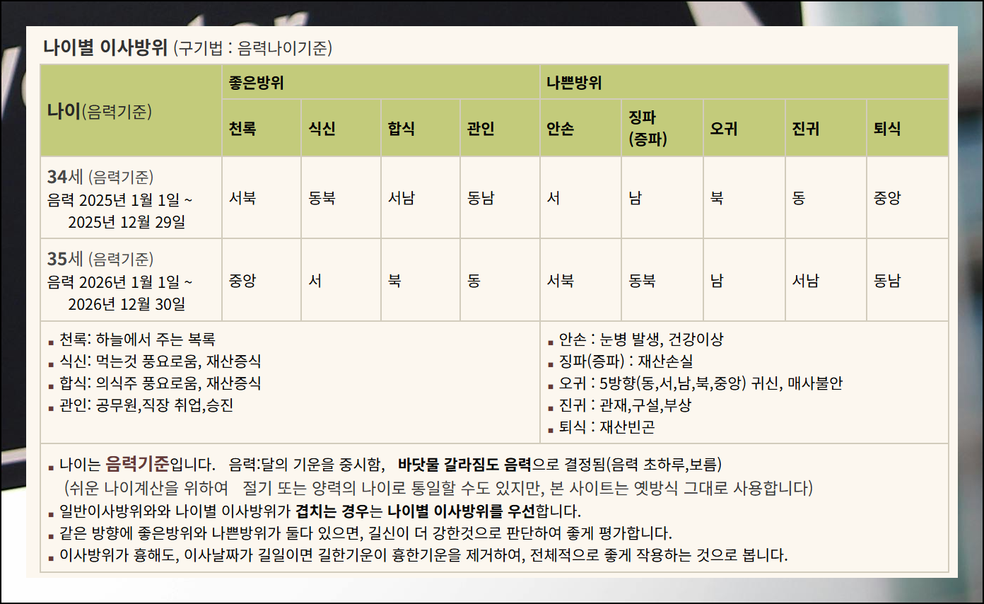 새로운 집으로 이사를 준비하면서 어느 방향으로 가야 할지 고민이 되시나요. 예로부터 우리 조상들은 사주팔자를 통해 이동하면 좋거나 피해야 할 방향을 미리 알아보곤 했습니다.
