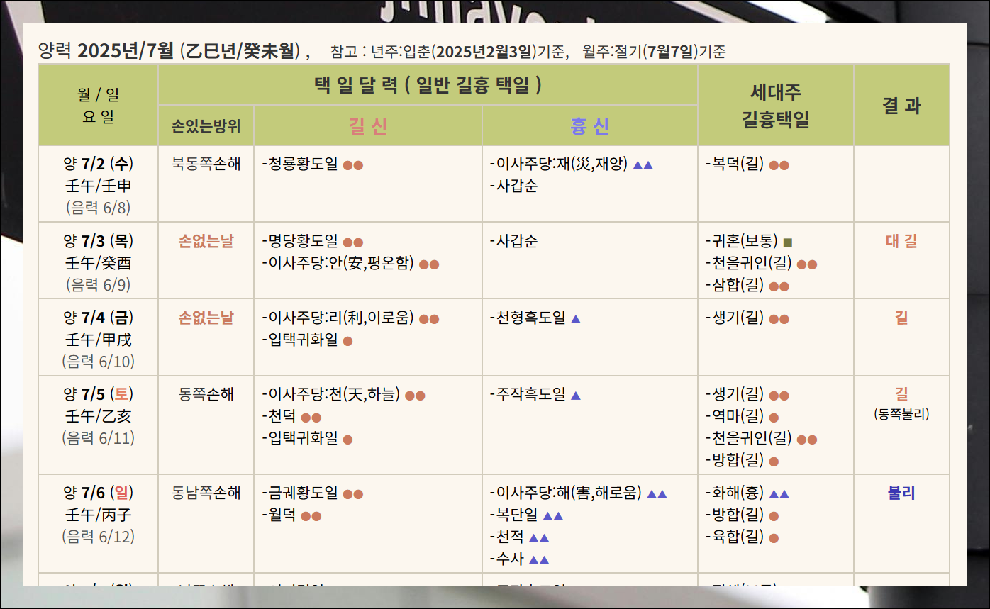 요즘에는 인터넷 사이트를 통해 간편하게 2025년 이사방향을 확인할 수 있어서 좋아요. 회원가입 없이도 무료로 이용할 수 있는 서비스들이 많아서 경제적 부담도 없습니다.