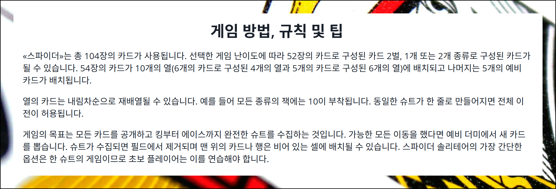 스파이더 카드게임 무료다운 필요없는 온라인 플레이 방법