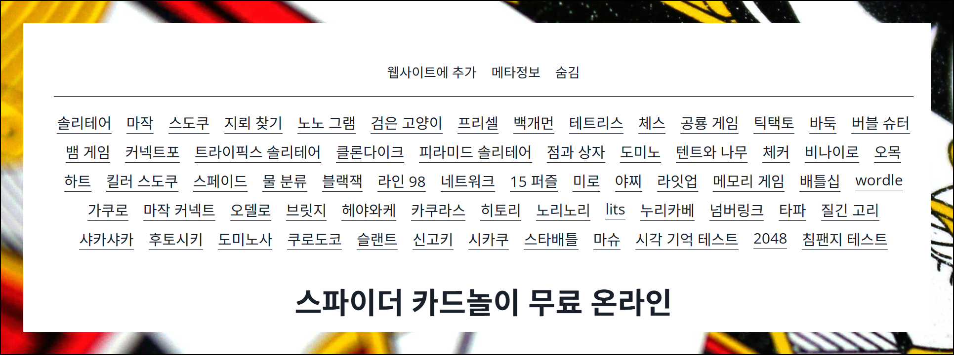 스파이더 카드게임 무료다운 필요없는 온라인 플레이 방법