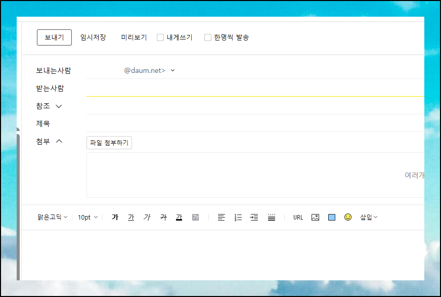 지금까지 이메일 주소만드는 방법에 대해 알려드렸는데요. 추가적으로 새로운 편지 작성을 하는 방법을 알려드리겠습니다. [메일쓰기] 버튼을 클릭하면 됩니다. 그 다음에는 수신자의 주소와 편지 제목, 그리고 전달하고자 하는 본문 내용을 순서대로 입력하시면 돼요. 중요한 문서나 사진 같은 파일들도 첨부 기능을 활용해서 함께 전송 가능해요. 이런 편리한 기능들을 상황에 맞게 활용해 보시기 바랍니다.