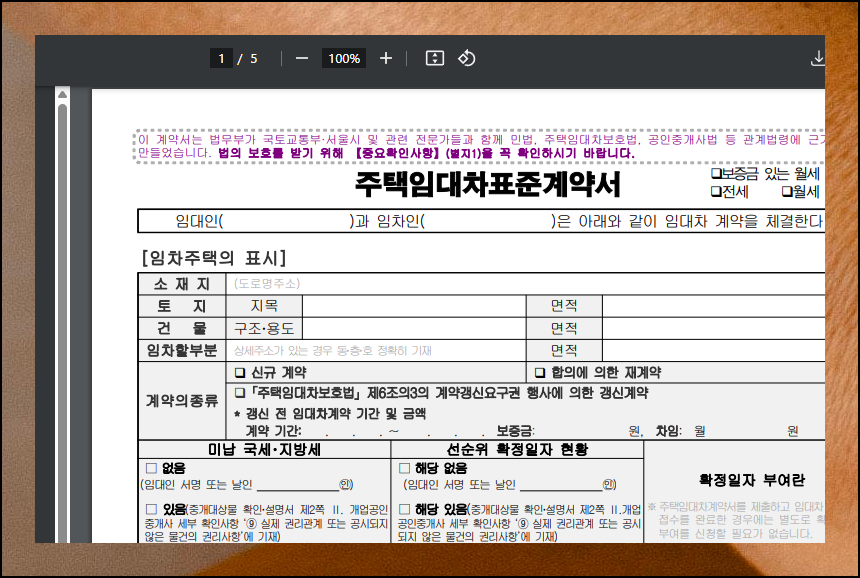 정부에서 공식 제공하는 전세계약서 서식은 세 가지 선택이 가능하도록 되어 있습니다. 보증금이 있는 월세용, 일반적인 월세용, 그리고 전세용으로 구분되어 있어요. 여기에는 전세계약서 작성을 할 때 반드시 포함되어야 할 기본 조항들이 미리 작성되어 있죠. 부동산 전문 지식이 부족한 일반인도 어려움 없이 활용할 수 있도록 만들어진 표준 양식입니다.