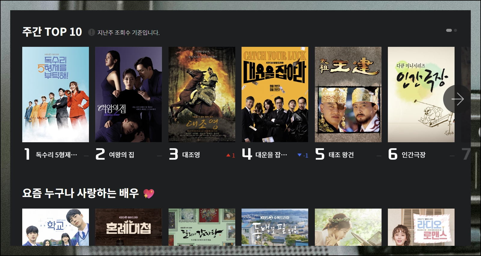 자주 이용하는 방송 플랫폼에서 만나볼 수 있는 대표 작품들을 소개드려요. "독수리 5형제를 부탁해"와 "여왕의 집" 같이 요즘 유행하는 작품을 무료로 감상할 수 있어요. tv 방송 시간에 맞춰 보기 어려웠던 인기 드라마들을 이제는 언제든지 자유롭게 감상하실 수 있습니다.