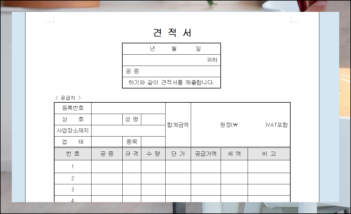 사업을 하시다 보면 견적서 작성 때문에 고민이 많으실 텐데요. 이런 부담을 덜어드리기 위해 현장에서 바로 쓸 수 있는 실용적인 해결책을 마련했습니다.