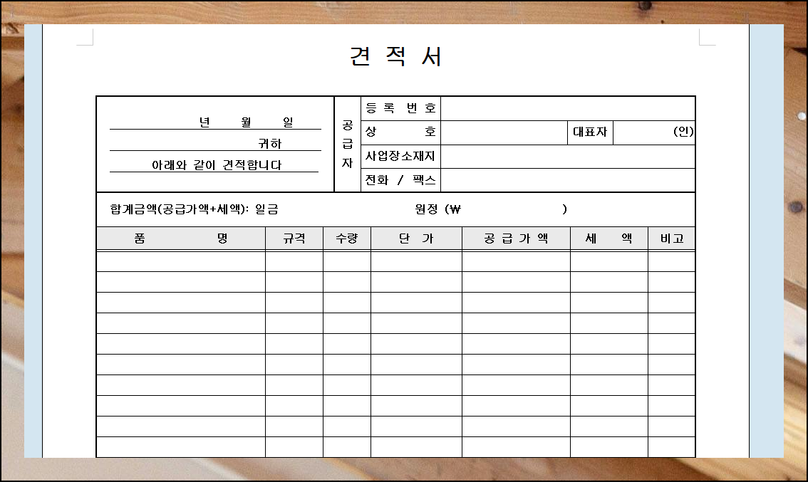비즈니스에서 새로운 파트너와 첫 거래를 시작할 때 가장 중요한 것은 서로에 대한 신뢰를 만드는 일입니다. 견적서는 이런 믿음을 쌓아가는 데에 꼭 필요한 서류에요. 공급업체와 고객이 각자 원하는 조건을 명확하게 전달하고, 이해할 수 있게 도와줍니다. 나중에 발생할 수 있는 갈등이나 오해를 사전에 방지하는 역할도 하죠. 특히 처음 만나는 거래처와 협업할 때는 더욱 정교하고, 상세한 견적서가 필요해요. 무료로 받을 수 있는 hwp 양식을 준비했으니 다운로드 받아 사용해보시길 바랍니다.
