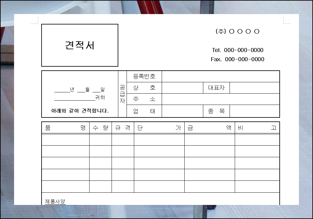 실무진들이 가장 골치 아파하는 문제 중 하나가 바로 견적서를 어떤 방식으로 작성해야 하는지에 대한 고민이에요. 이런 어려움을 해결해 드리고자 현장에서 바로 적용 가능한 실용적이고 깔끔한 hwp 양식을 준비했습니다. 바로 지금 다운받아서 견적서 작성에 활용하실 수 있어요. 모든 필수 항목들이 체계적이고 논리적으로 배치되어 있어서 작성 과정이 간단합니다. 문서를 받아보는 상대방도 내용을 쉽게 이해할 수 있죠. 견적서 작성용 서식을 찾느라 소중한 업무 시간을 낭비하는 일은 이제 그만하세요.