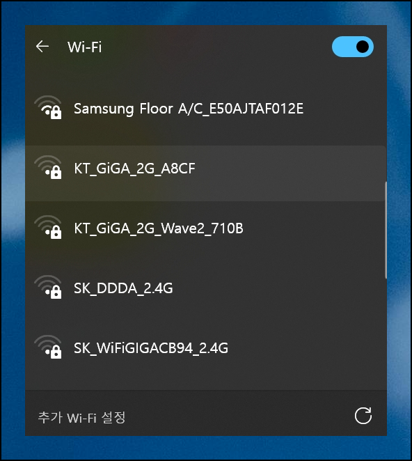 무선 네트워크를 활용하고 계신다면 와이파이 상태를 다시 한번 점검해봐야 해요. 사용 가능한 목록에서 본인이 활용하는 공유기 이름을 찾아 클릭해주세요. 간혹 자동 접속이 해제되어 있거나 신호가 약해서 끊어지는 경우가 있어요.