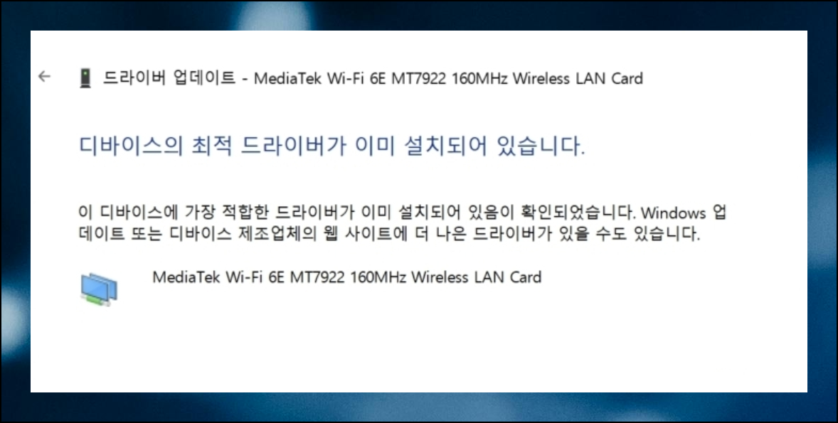 이미 최신 드라이버가 설치되어 있는 경우라면 "드라이버가 최신 상태입니다"라는 메시지를 보게 될 거예요. 이런 경우에는 드라이버 문제가 아닌 다른 원인을 찾아봐야 합니다.
