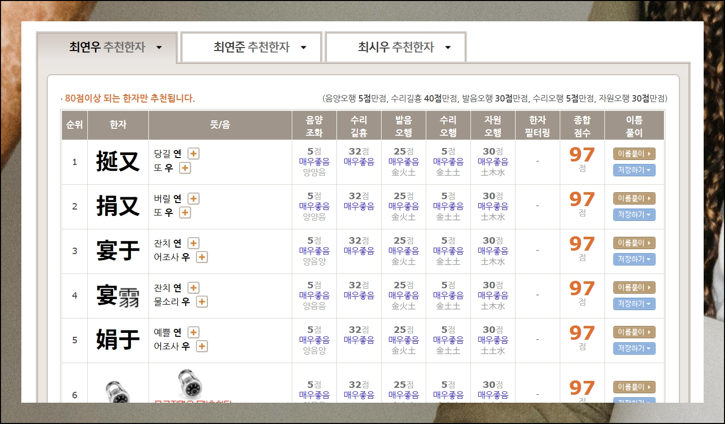 | 한자 성명풀이 무료 분석 결과보기 (2) | 2025.06.06 |