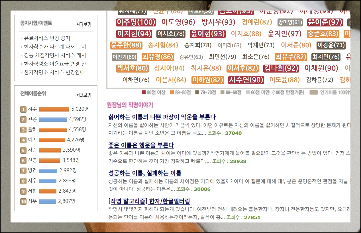 남자 이름 모음, 한글 및 한자 온라인에서 쉽게 얻기