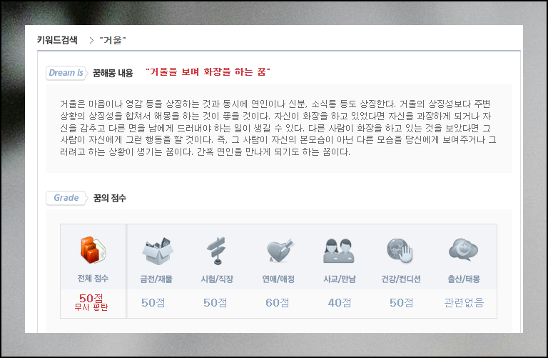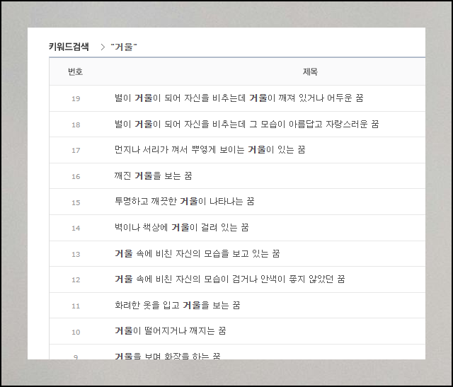다음 플랫폼에서 제공하는 거울 꿈해몽 섹션을 살펴보면 정말 세심한 분류를 확인할 수 있어요. 거울을 보며 화장을 하는 꿈, 뿌옇게 흐린 거울을 보는 꿈, 깨져버린 거울 조각들을 발견하는 꿈 등 구체적인 상황별로 나누어 설명하고 있습니다. 자신이 실제로 꾼 꿈과 가장 비슷한 사례를 쉽게 찾을 수 있도록 도와주는 거죠.