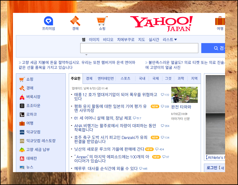 야후 재팬 화면이 처음에는 일본어로 나타나더라도 걱정 없어요. 잠시만 기다리면 한글판으로 바뀝니다. 사용법이 어렵지 않아요. 누구든지 쉽게 활용할 수 있어요.