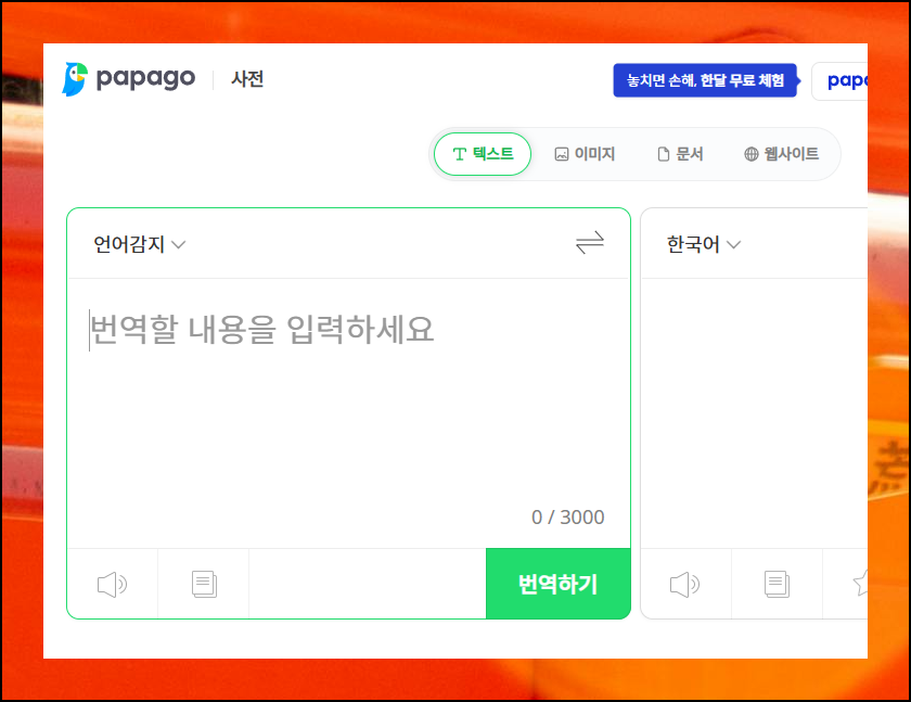 상단 메뉴 중에서 네 번째에 위치한 [웹사이트] 버튼을 눌러주시면 됩니다. 문서 번역을 원한다면 세 번째 문서 메뉴를 선택하세요. 이런 간단한 과정만으로도 파파고를 활용한 한글판 웹페이지 이용이 가능해 집니다.